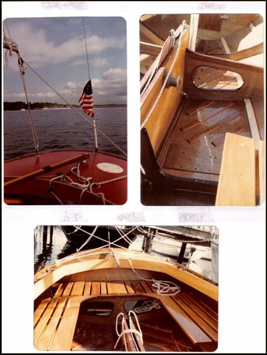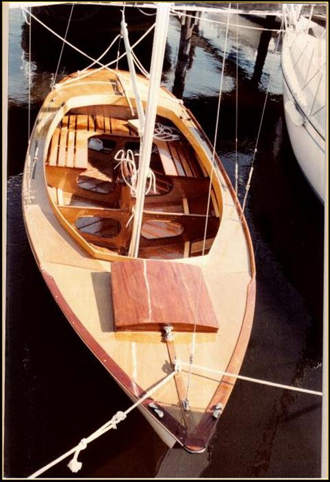 Jim’s last build, 1980- “Heart’s Content” Later painted deck red polyurethane to endure the Florida sun. Marine ply/epoxy, Honduras & African mahagony, spruce stringers and coaming, fantail stern. Fore/aft decks watertight. Heart’s Content is in fact a town on the coast of Conception Bay Newfoundland, home of my mother’s family. Other garage builds (1970-1974): 28’ triamaran, 15’ lap strake sailing dory, 10’ dingy, 30’ lobster boat, furniture...